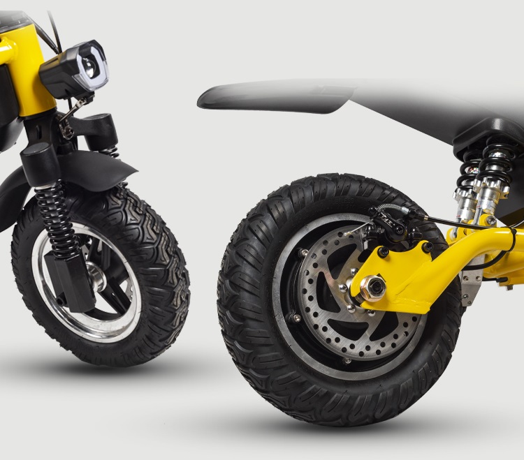 Neumático:   neumático sin cámara delantero y trasero de 10 ”